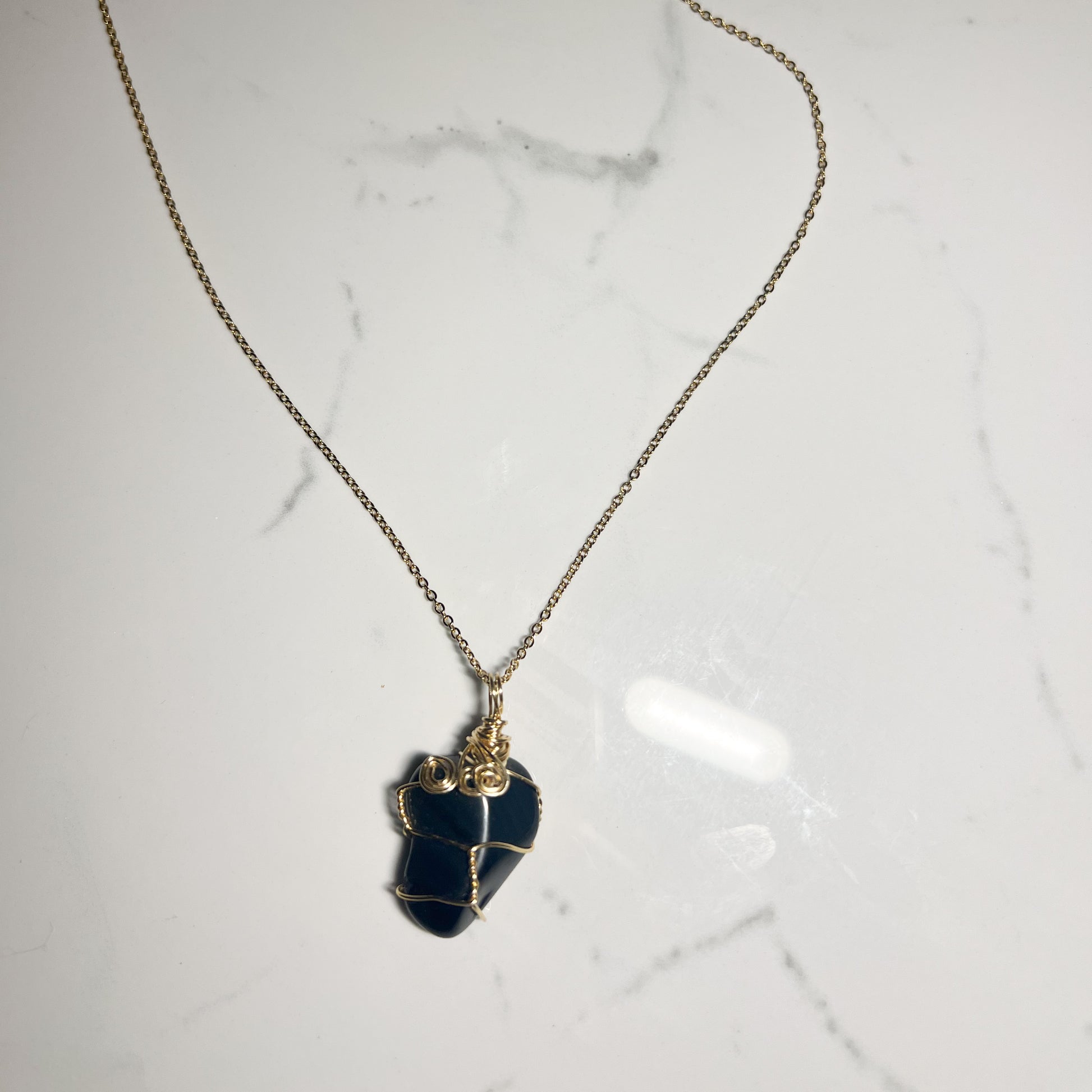 Wire wrapped Black Obsidian gemstone on a 18 inch chain.
